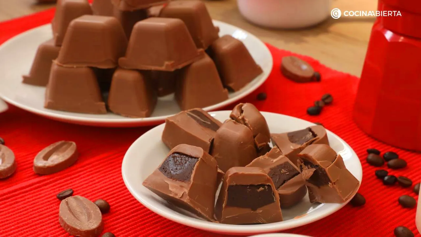 Combinamos el chocolate negro y el chocolate con leche con el espectacular aroma del café dando un resultado espectacular. Y lo hemos hecho utilizando moldes para cubitos, pero si quieres darle alguna forma bonita y diferente (tipo corazones u otras siluetas) puedes elaborarlos con un molde para bombones. De todas formas, te enseñamos también cómo hacerlos sin molde.