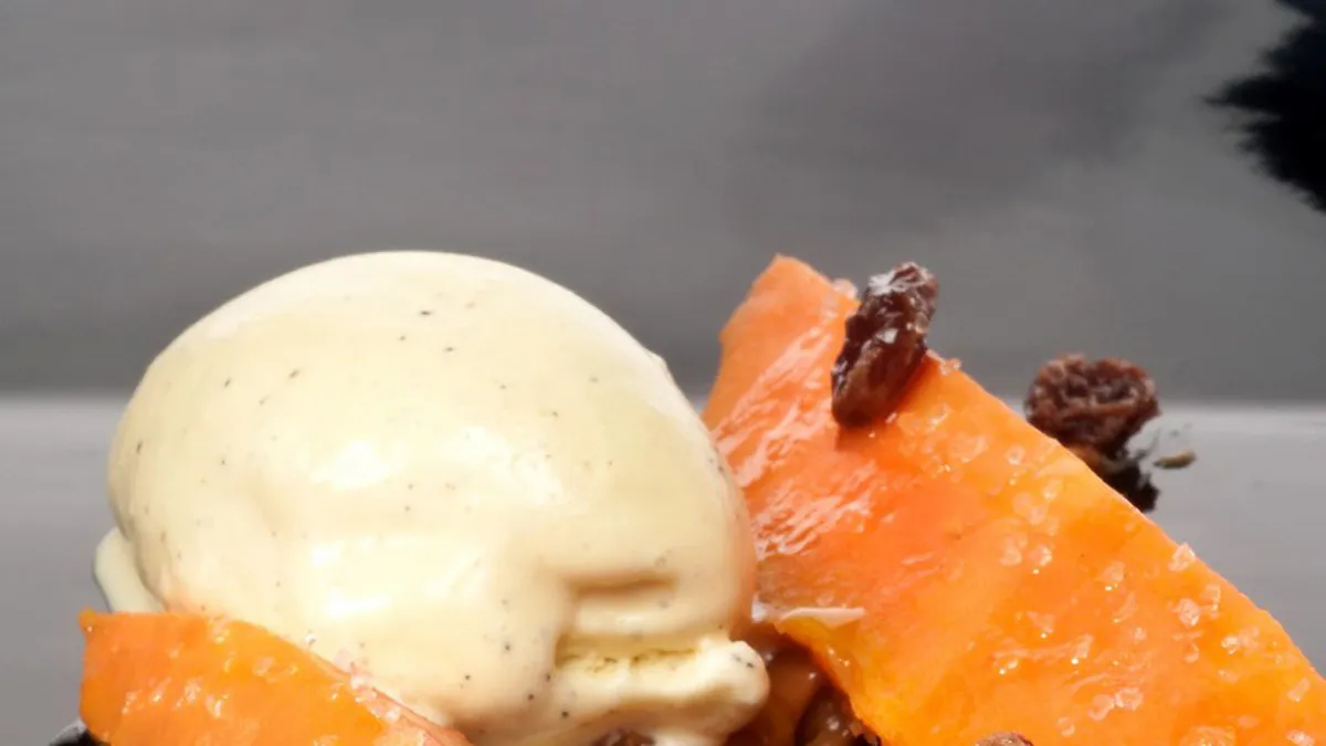 La receta de boniato con dulce de leche y pasas es el postre que nos presenta el cocinero Bruno Oteiza.