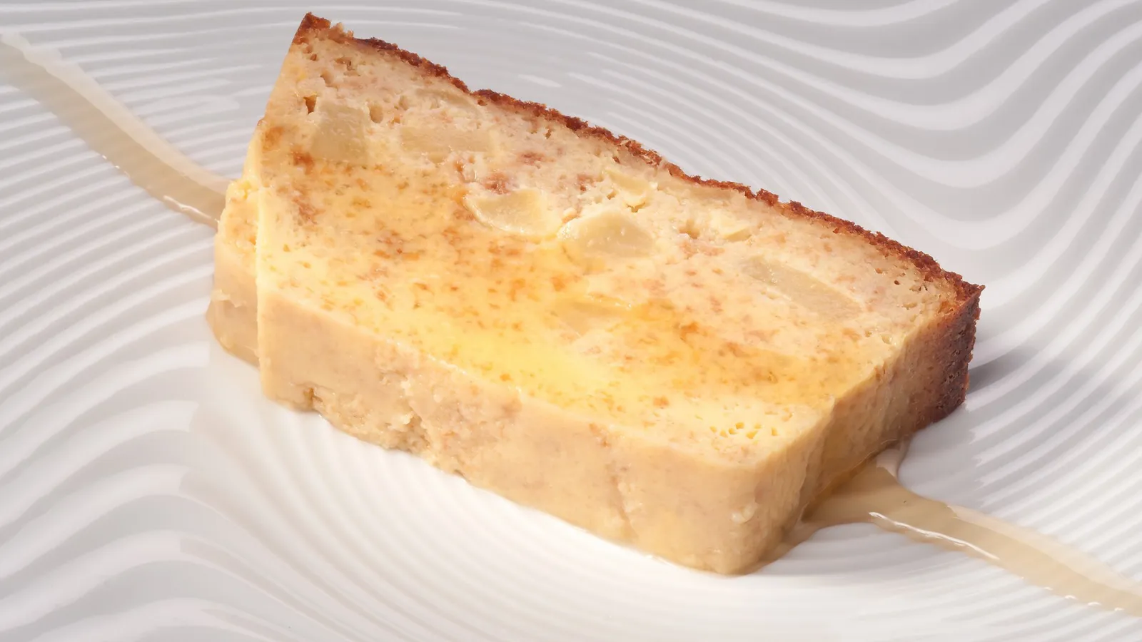 Trocea el budin navideño y sírvelo con una pizca de miel y una ramita de romero.