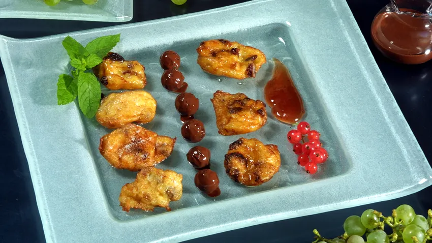 Receta de buñuelos de harina, huevo y mantequilla rellenos de pasas. Postre de otoño elaborado por Karlos Arguiñano.