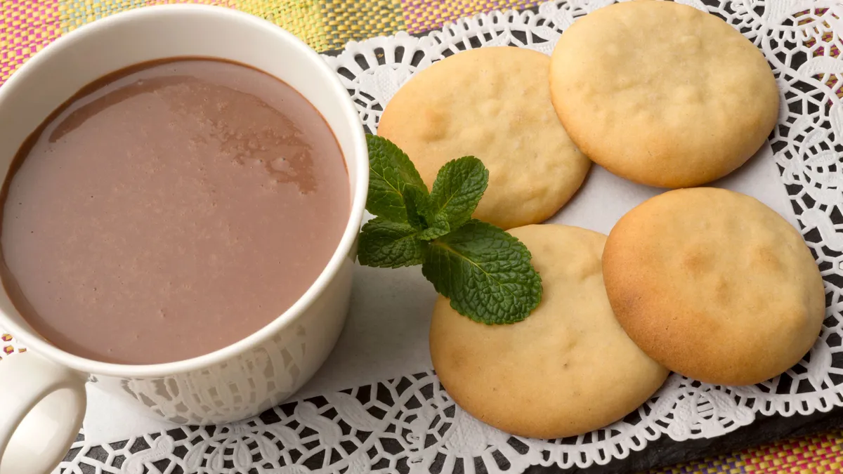 Receta de Eva Arguiñano de chocolate caliente con aroma de canela acompañado de galletas de nata caseras, una merienda perfecta para disfrutar los días de frío.