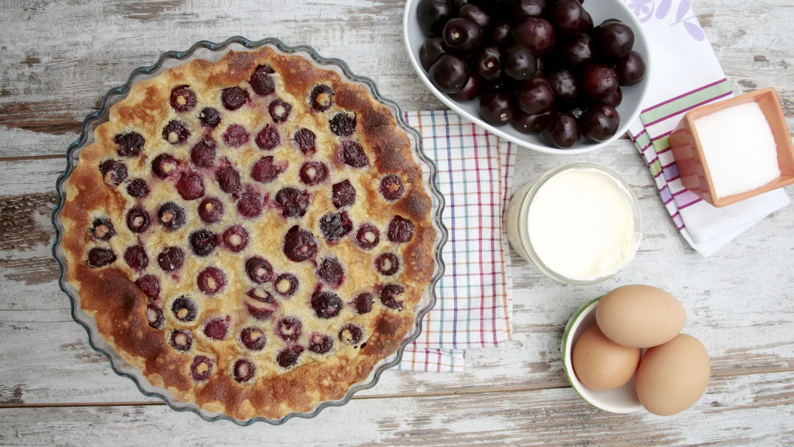 Receta de clafoutis de cerezas, un postre típico francés muy fácil de hacer y que hará las delicias de los amantes de las cerezas.