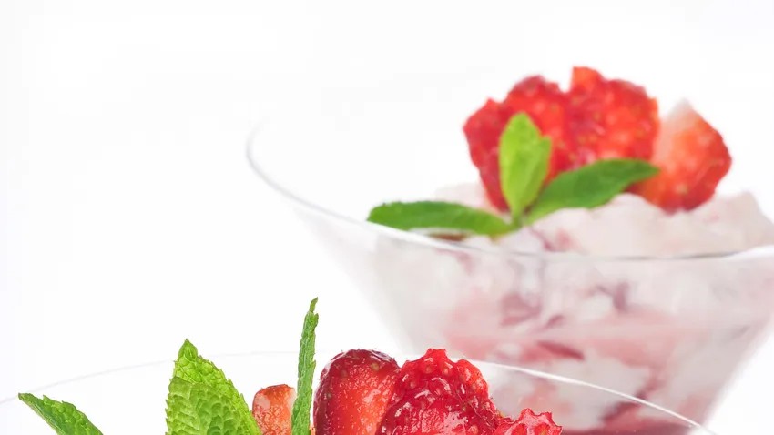 Copa de fresas con crema, un postre de Eva Arguiñano con fresas, queso para untar y agar-agar.