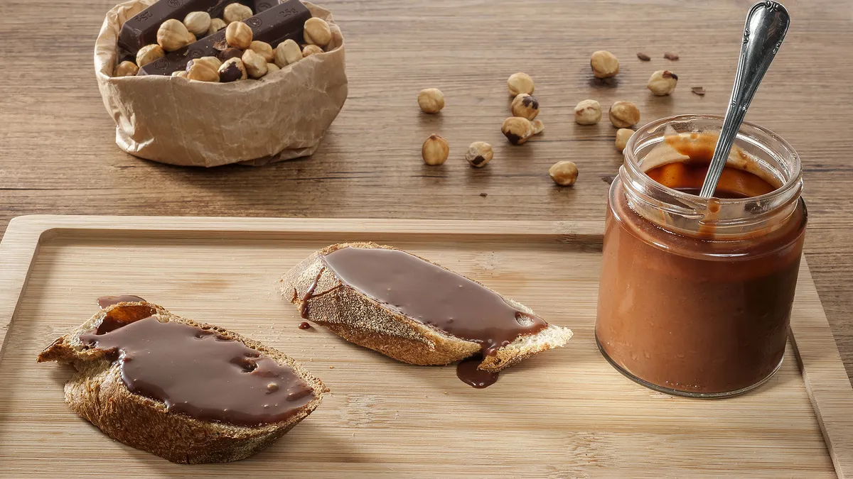 Joseba Arguiñano explica cómo preparar crema casera de chocolate, caramelo y avellana, perfecta para untar unas rebanadas de pan y servir en la merienda.