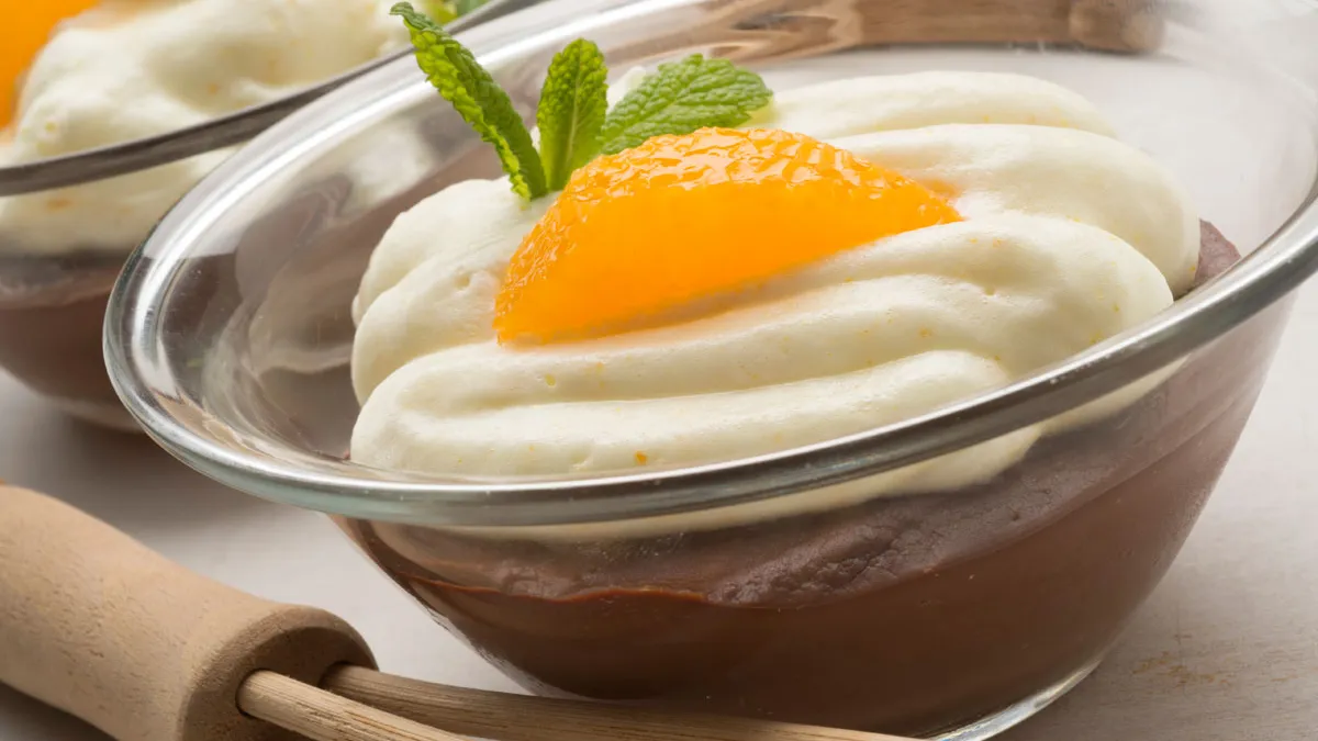 Receta de Eva Arguiñano de crema de chocolate acompañada de merengue de naranja, un postre fácil que combina dos sabores perfectamente: el chocolate y la naranja.