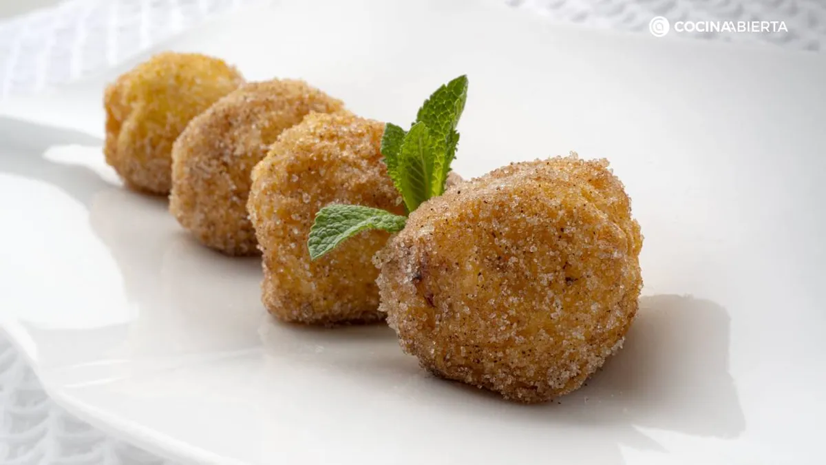 Se trata de un postre sin gluten ya que para rebozar, en lugar de harina de trigo, usaremos harina de maíz refinada. Después de freír en la sartén, el toque final será pasar las croquetas con azúcar y canela. ¡Un espectáculo!