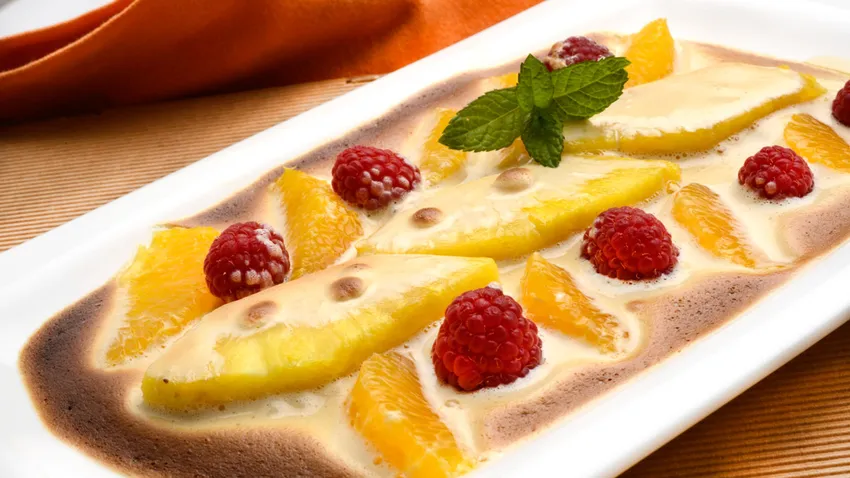Frutas con sabayón de vino dulce