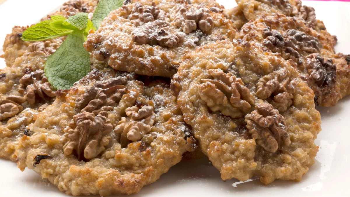 Receta de Eva Arguiñano de galletas caseras de avena elaboradas en el horno con compota de manzana, pasas y nueces. Un postre saludable que ayuda a prevenir el estreñimiento y bajar el colesterol.