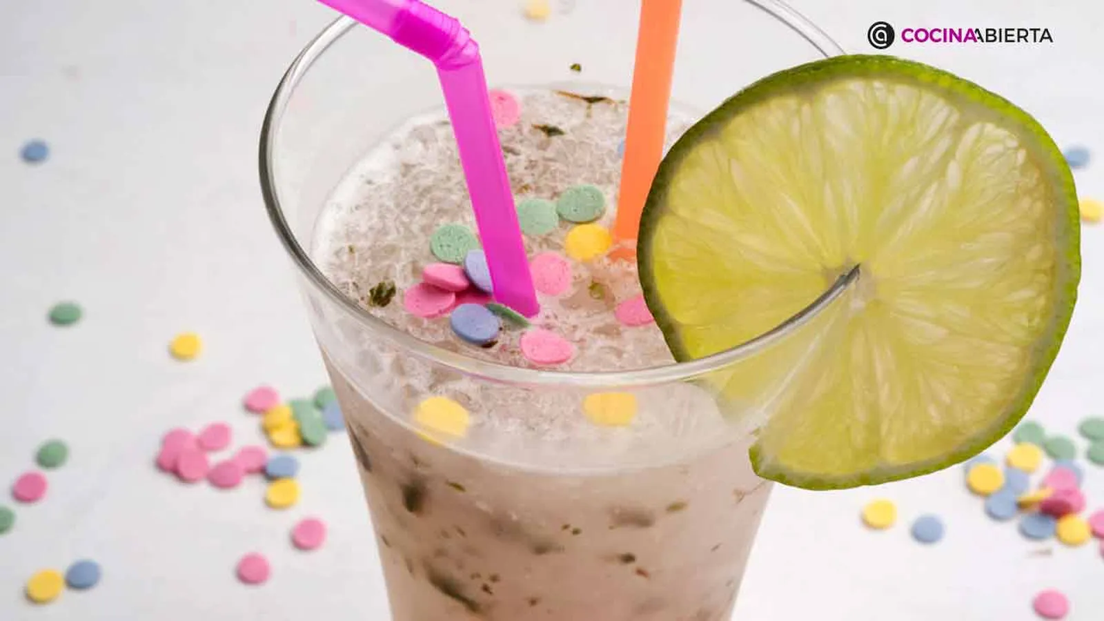 Decora con unos confetis de colores. Corta la otra lima (haciendo un detalle bonito) y decora los vasos. Sirve el granizado de rebujito.