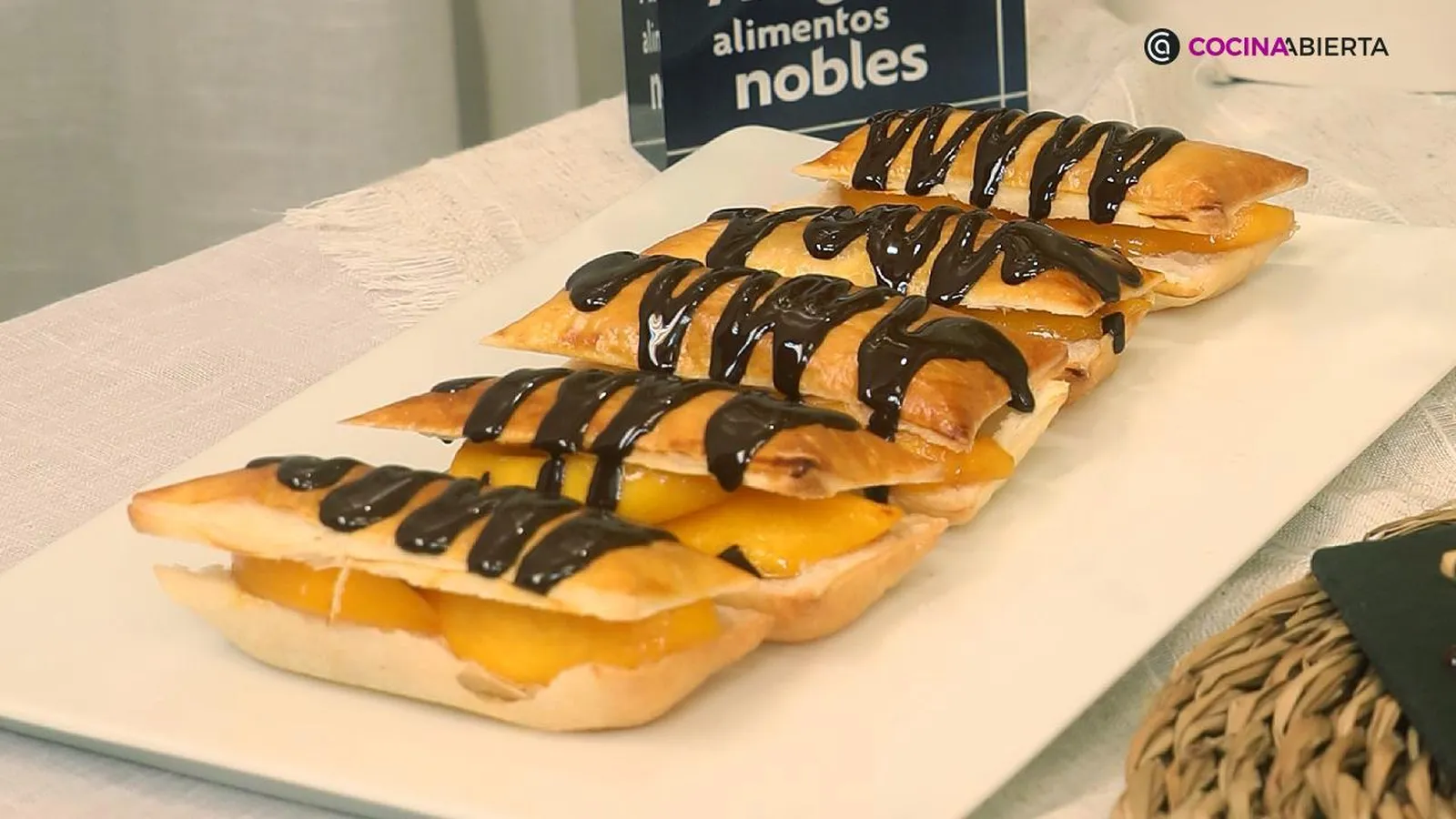 Potenciamos así el sabor de los melocotones D.O.P. de Calanda para que destaquen entre el hojaldre en una de sus mejores versiones. También podéis preparar una mermelada de melocotón con ellos si preferís que el relleno sea suave y algo más cremoso.