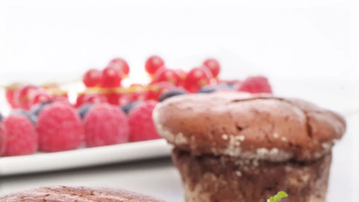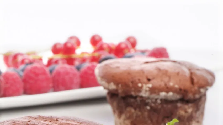 Unta los moldes individuales con mantequilla y azúcar glas y rellénalos de la masa anterior. Introdúcelos al horno a 180º C., durante 8 minutos.