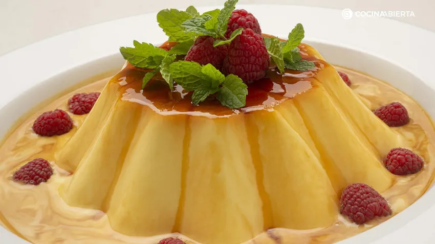 Cubre el interior de un molde (flanera de cristal o molde de silicona) con el caramelo. Rellénalo con la mezcla anterior zumo, deja se temple, introdúcelo en el frigorífico y espera a que cuaje (6-8 horas aproximadamente).