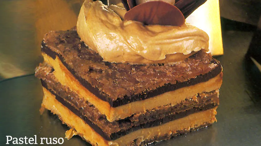 Receta de pastel ruso, un postre con mucha historia que consiste en un pastel de almendras relleno de crema de mantequilla.
