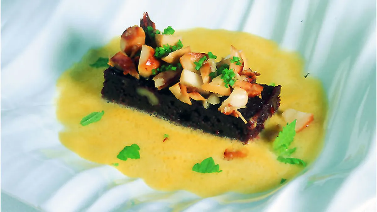 Juan Mari Arzak elabora una receta de pastelitos de chocolate o brownies acompañados de coquitos de Brasil caramelizados y sopa de piña, un postre muy exótico.