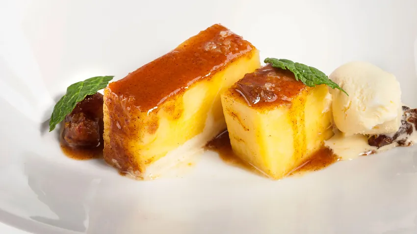 Receta de Bruno Oteiza de piña asada en el horno a la miel y acompañada de dátiles, salsa y una bola de helado, un postre saludable y fácil de preparar.