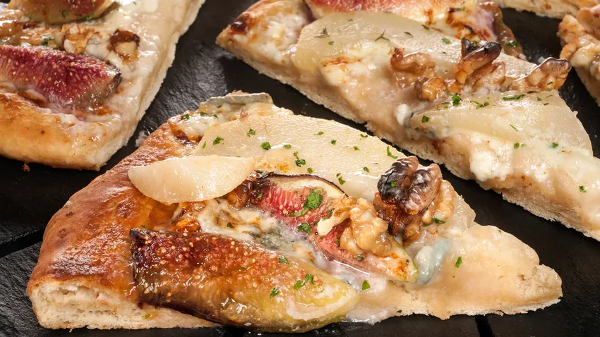 Receta de Bruno Oteiza de pizza dulce, una original versión de la tradicional pizza con masa casera, queso y frutas de otoño (peras, higos y nueces).
