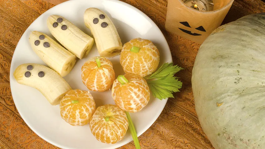Os enseñamos cómo preparar una terrorífica merienda para Halloween a base de plátanos y mandarinas. ¡Les encantará a los niños y conseguiremos que coman fruta de forma fácil y rápida!