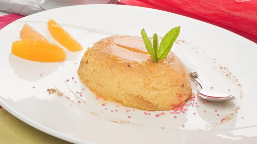 Pudín cremoso de naranja y pomelo con bizcocho