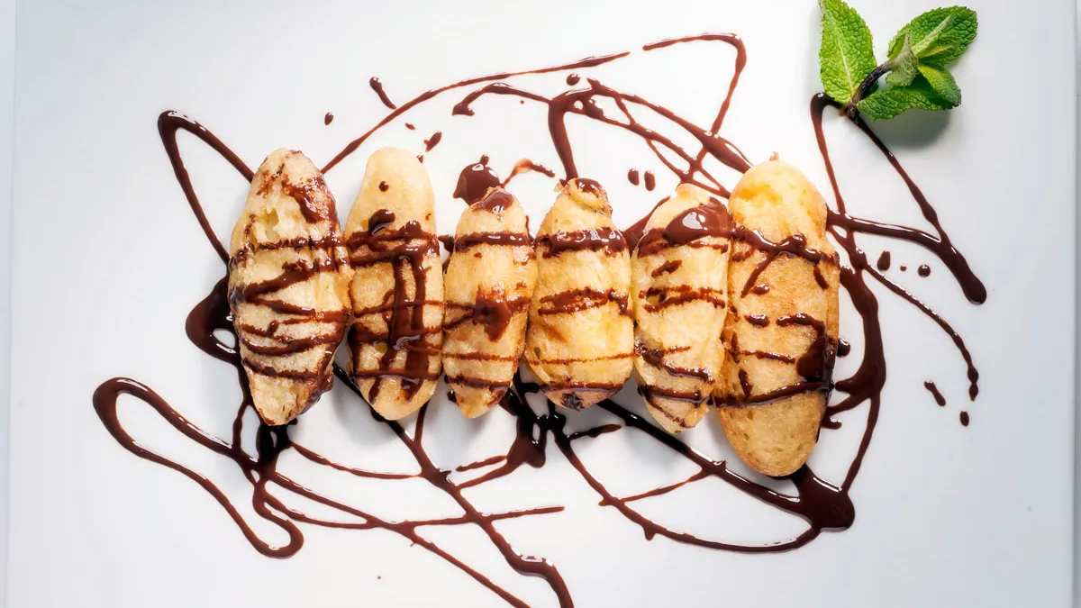 Rebozaditos de plátano con salsa de chocolate