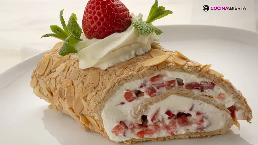 Compartimos un delicioso postre en el que se combinan diferentes tipos de sabores y sensaciones: Rollo de merengue con fresas, una exquisita propuesta que destaca por su textura tierna y esponjosa, una suave crema y el crujiente de las fresas, con el paso a paso de Eva Arguiñano.