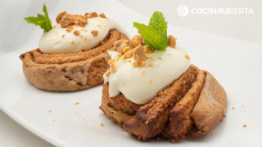 Los rollos de canela o espirales de canela se crearon1920 en Dinamarca y Suecia. Hoy en día son un dulce típico de la repostería del norte de Europa y Estados Unidos. Los cinnamon rolls son una masa tipo brioche con canela y azúcar que se enrolla, corta y honrea dando su forma característica. Suelen llevar un glaseado de azúcar o crema de queso como en esta receta que nos propone Joseba Arguiñano.