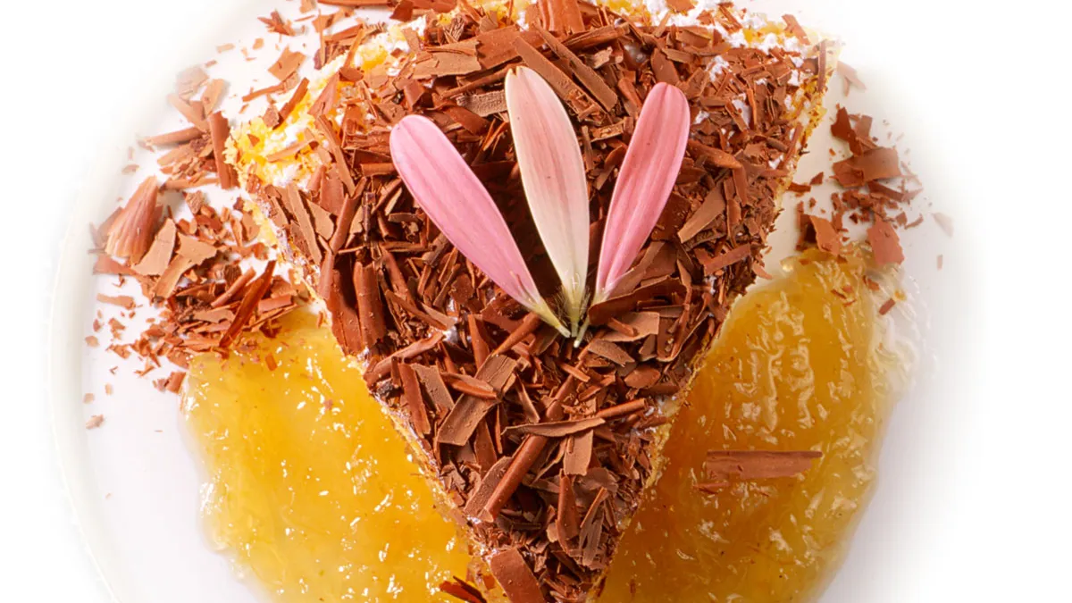 Eva Arguiñano prepara una tarta rellena de cabello de ángel decorada con virutas de chocolate y azúcar glas.