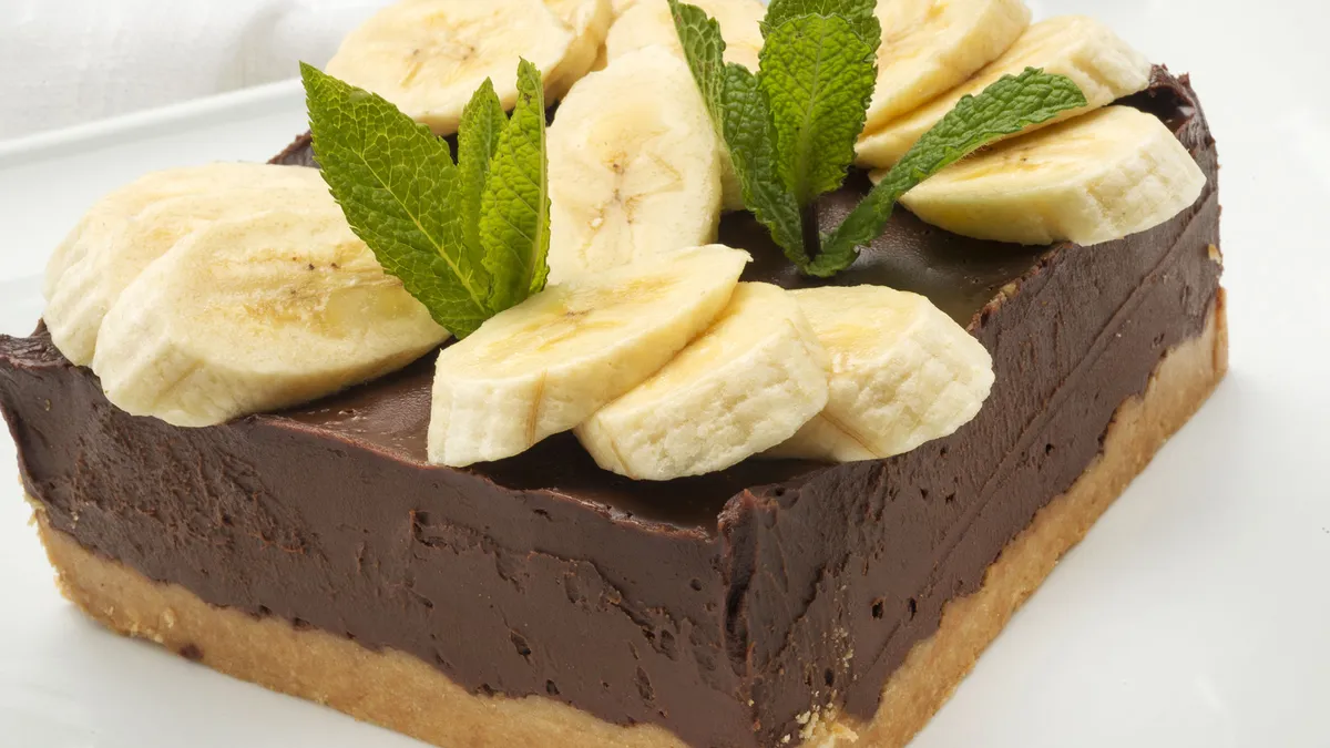 Eva Arguiñano presenta una tarta de chocolate con base de galleta y decorada con plátano, un postre sencillo elaborado sin horno.