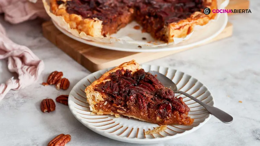 Si hay una receta que captura la esencia del Día de Acción de Gracias, esa es la tarta de nueces pecanas o pecan pie. Este clásico de la repostería estadounidense combina el crujiente de las nueces con la cremosidad del relleno dulce de caramelo y un toque suave de vainilla.