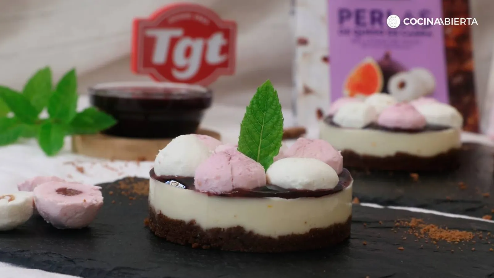 Las tartas de queso con base de galleta y cobertura de mermelada son todo un clásico. Pero si te apetece algo diferente y divertido aquí te propongo decorar la tarta con perlas de queso de cabra Oh My Cheese! de TGT rellenas de frutas, en este caso, de frambuesa e higo. Una mezcla curiosa y una forma atrevida de experimentar con el queso, perfecta si te encanta innovar en la cocina y probar cosas nuevas.