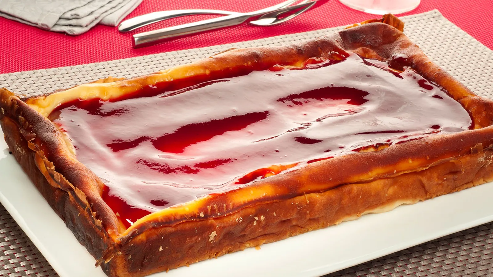 Esta tarta de queso es una preparación muy básica para hacerla en casa al horno. Puedes decorarla con la mermelada que prefieras, nosotros la hemos adornado con mermelada de frambuesa, pero puedes utilizar de fresa, melocotón...