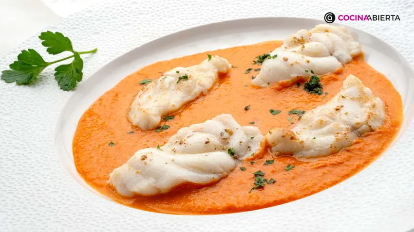 Su elaboración no tiene complicaciones: se asan los pimientos morrones rojos, se trituran para hacer la salsa y se fríe el rape en una sartén. Si el pescado por sí solo ya es delicioso, con esta salsa alcanza otro nivel.