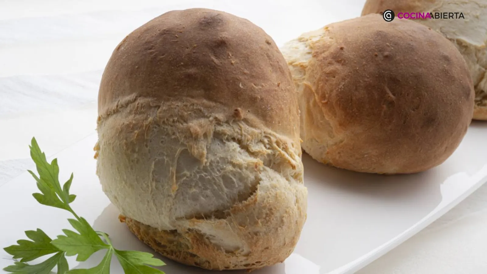 Sirve los bollos de pan casero y adorna con unas hojas de perejil.