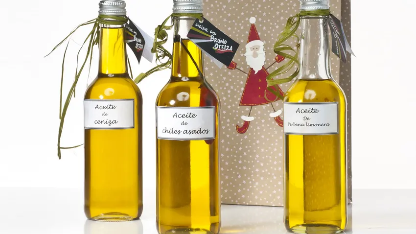 Bruno Oteiza elaboró unos aceites aromatizados de Navidad que, tras 20 días de reposo, ya están listos para consumir.