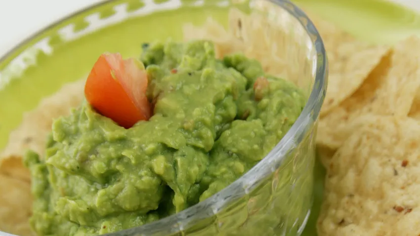 Sencilla salsa a base de aguacate, cebolla y chiles para acompañar en un aperitivo.