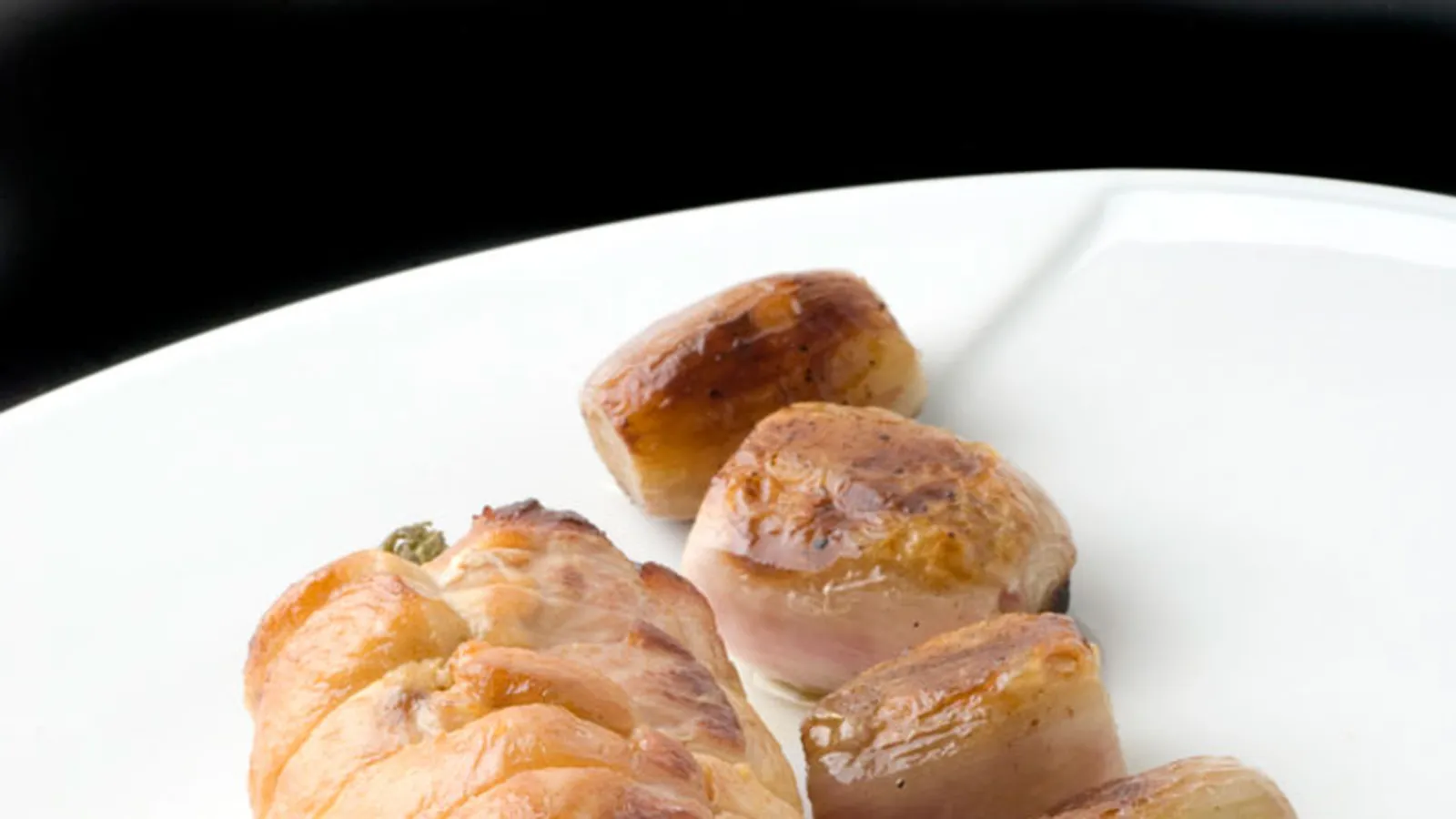 Maja en un mortero la pimienta rosa e incorpora a un cazo. Añade el caldo de ave y la nata y sazona. Deja reducir a fuego medio durante 10-12 minutos.