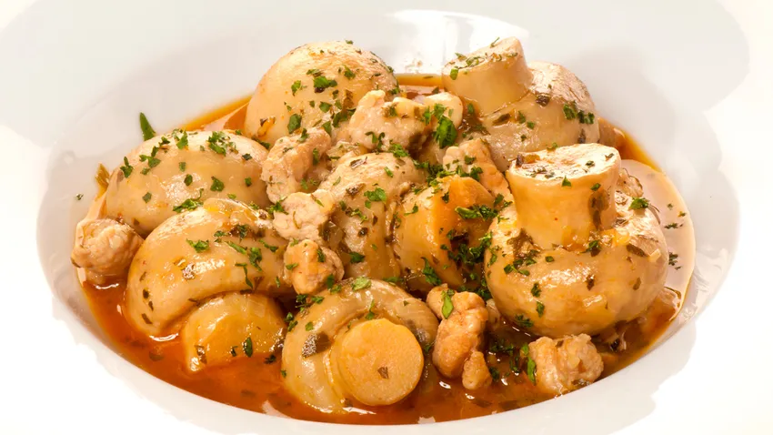 Champiñones guisados con mollejas