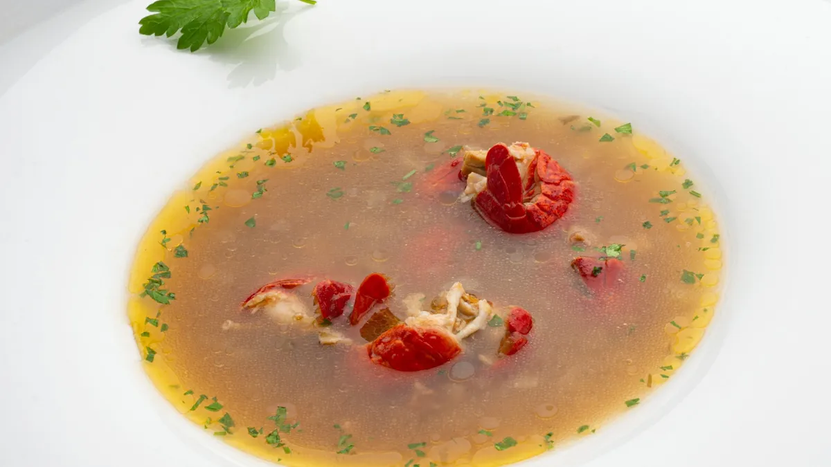 Esta sopa tiene la particularidad de mezclar en su elaboración un producto cárnico (carne de cordero) con otro procedente del río (carne de cangrejo).