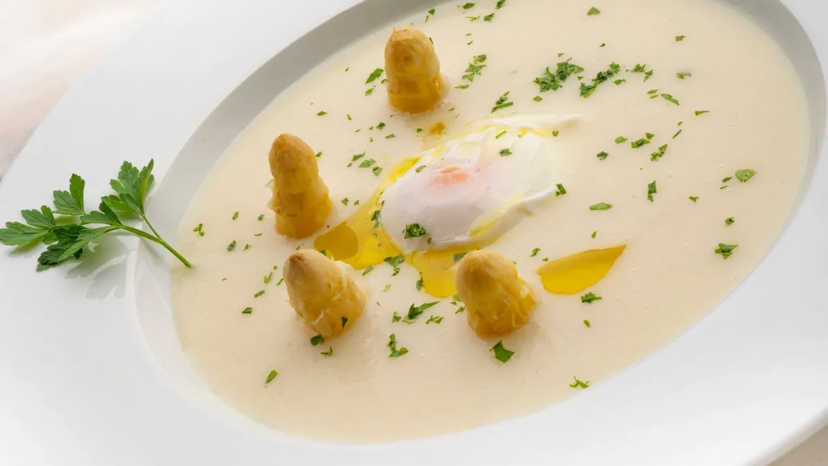 Sopa de espárragos blancos con huevo escalfado, receta de Arguiñano
