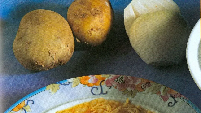 Receta de cazuela de fideos a la andaluza, una sopa rica con caballa, fideos, patatas pimientos y azafrán, inspirada de la cocina andaluza. Receta de Karlos Arguiñano.