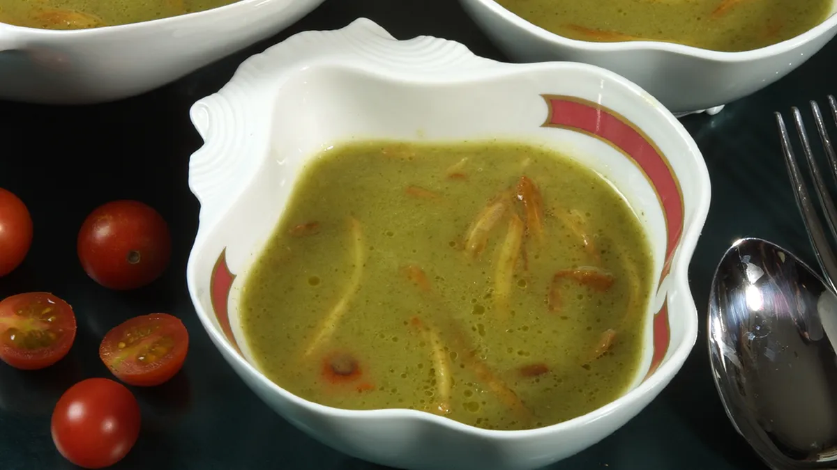 Receta de Crema ligera de acelgas con patata, cebolla y tomatitos cherry.