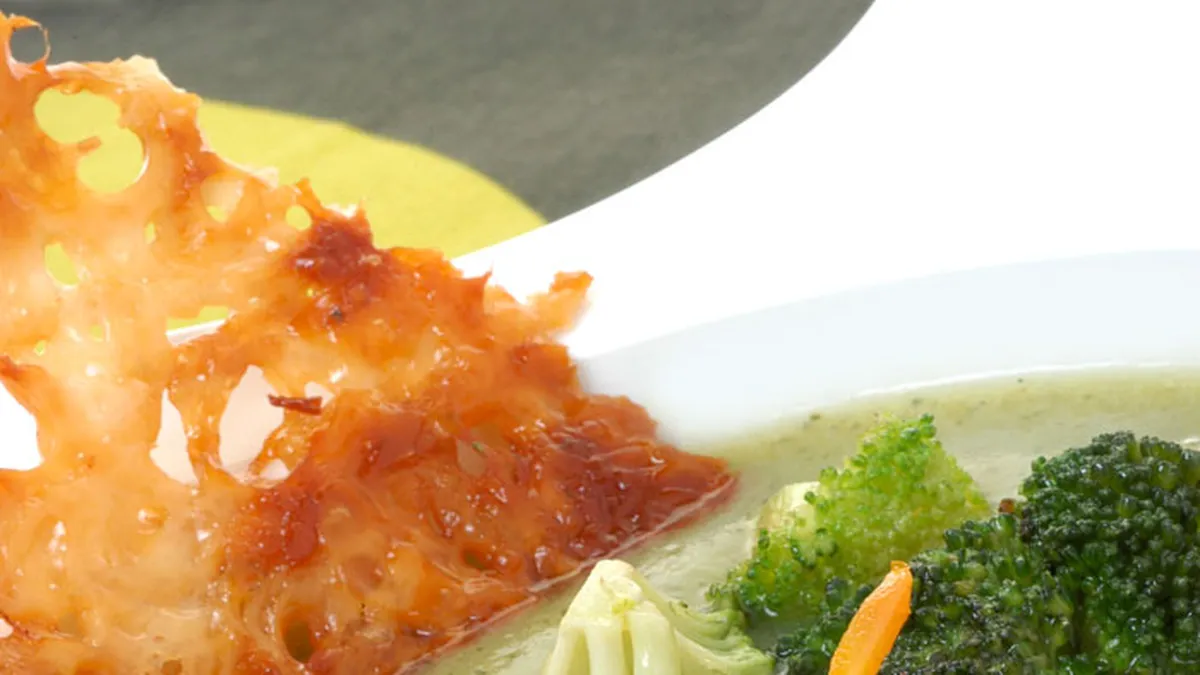 Karlos Arguiñano presenta una versión más elaborada de la receta de crema de calabacín: esta servida con verduras y de una tortita de queso.