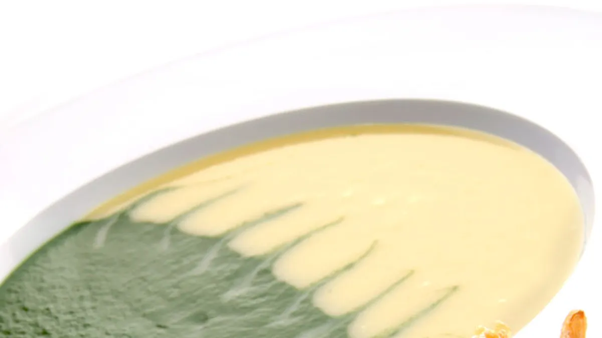 Receta de crema de espinacas y patata con tempura, un plato otoñal agregado de su tempura de zanahorias, pimientos y cebolla. Receta de Karlos Arguiñano.