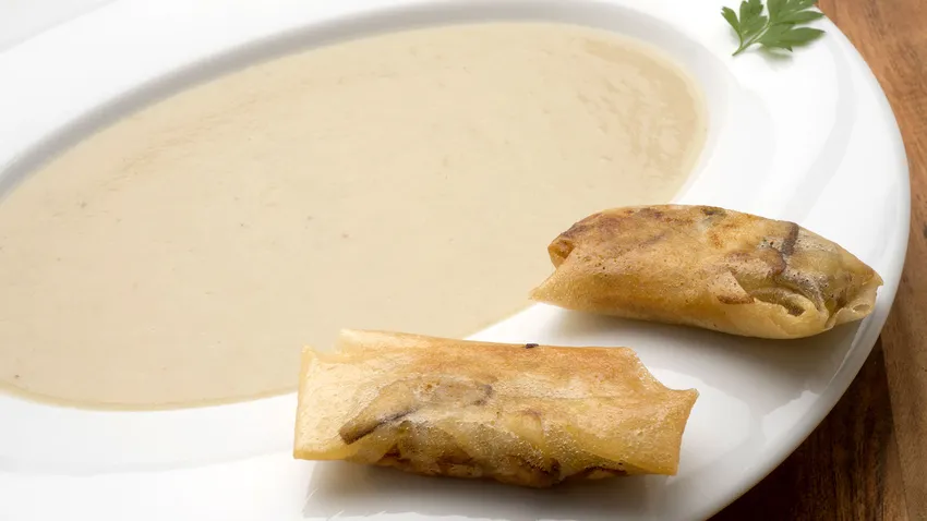 Karlos Arguiñano elabora una crema de hongos y arroz acompañada de bricks rellenos de hongos salteados, un plato de otoño apto para vegetarianos y veganos.