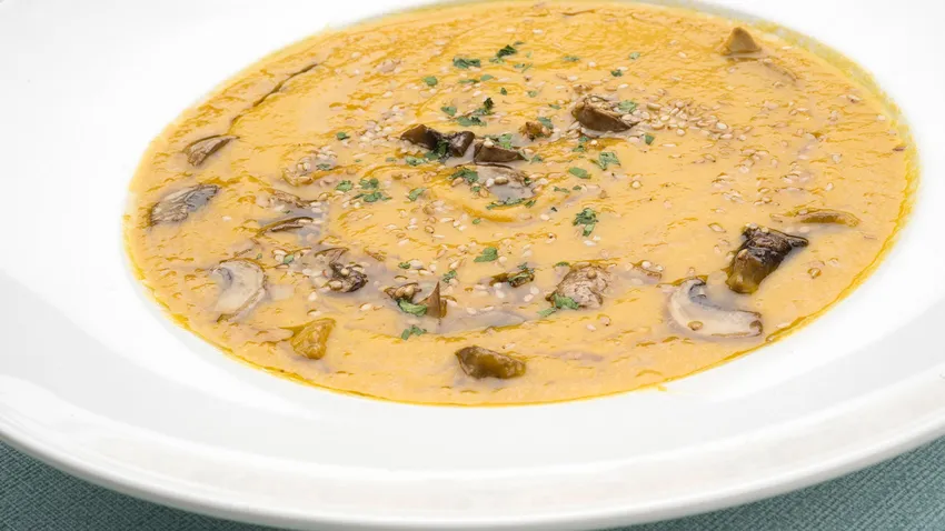 Elaboración de la receta de Crema de zanahoria con champiñones y sésamo: