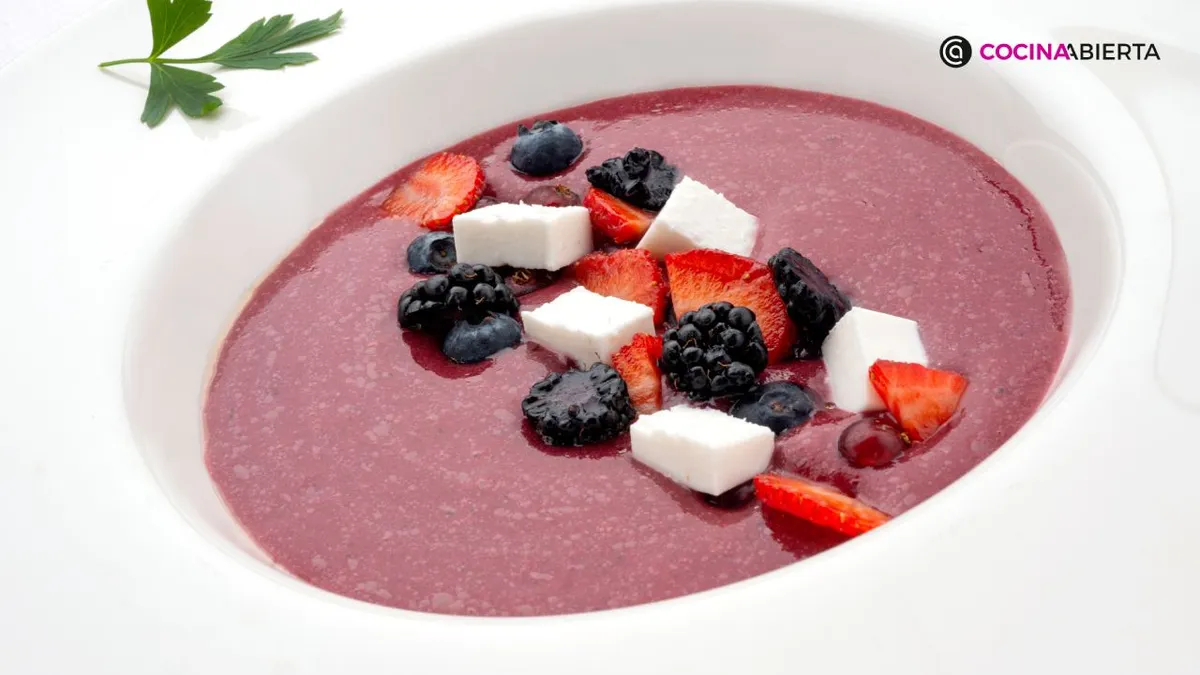 Si hay una receta que siempre es una apuesta segura en verano, aparte de las ensaladas de patata, son las sopas y cremas frías, como el clásico gazpacho andaluz. Karlos Arguiñano nos trae una versión diferente: gazpacho de frutos rojos. Esta receta, que lleva pan sin gluten para que sea apta para celíacos, incluye fresas, arándanos, grosellas y moras, pero curiosamente no lleva tomate. Para rematar, lo acompaña con queso fresco de cabra. Es una receta que debes probar y compartir con tu familia, porque estoy segura que te va a encantar.