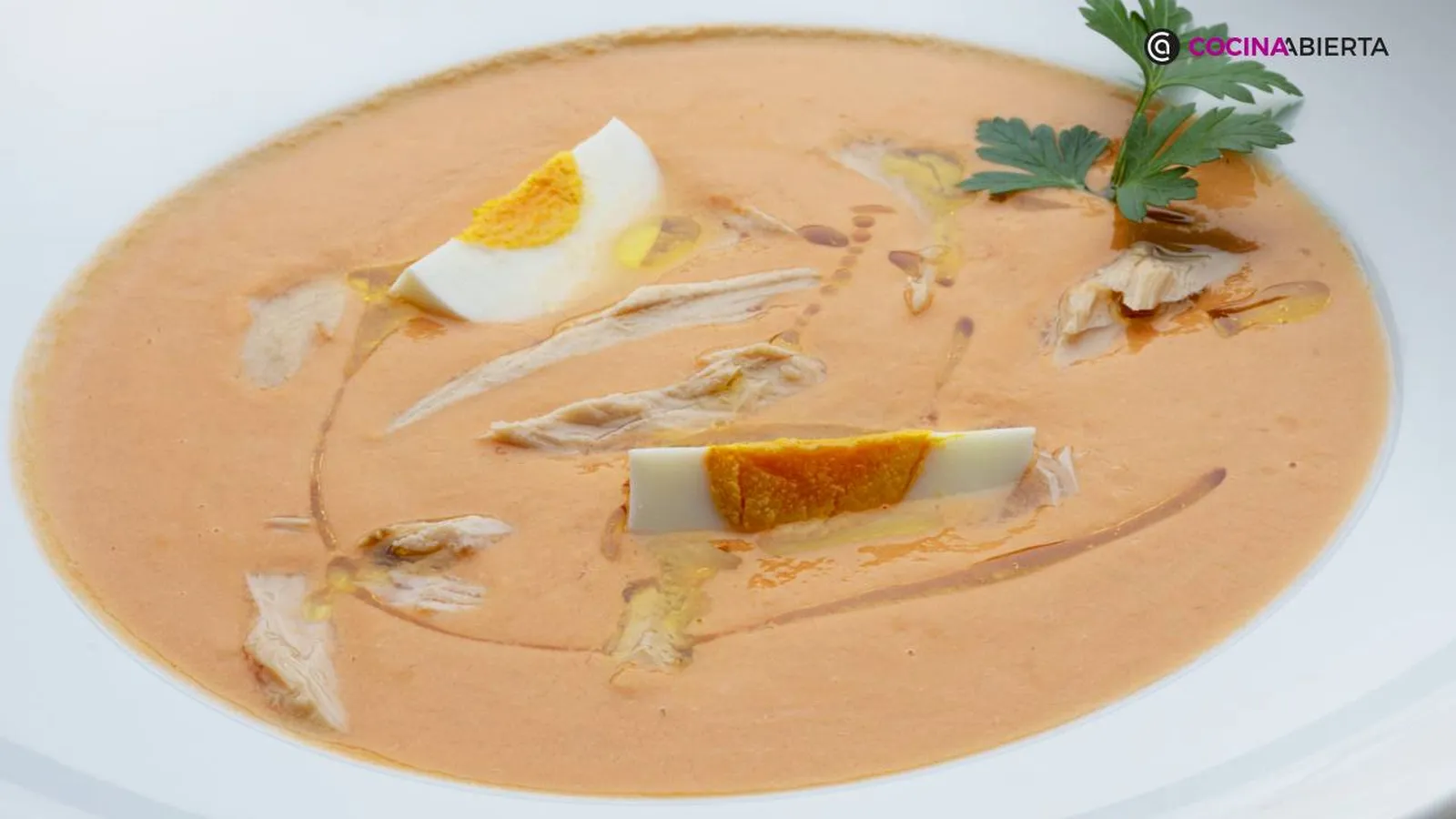 Normalmente regamos la porra antequerana con un hilo de aceite de oliva y como en esta ocasión la acompañamos de huevo cocido, unas lascas de atún al natural o unos taquitos de jamón cocido.