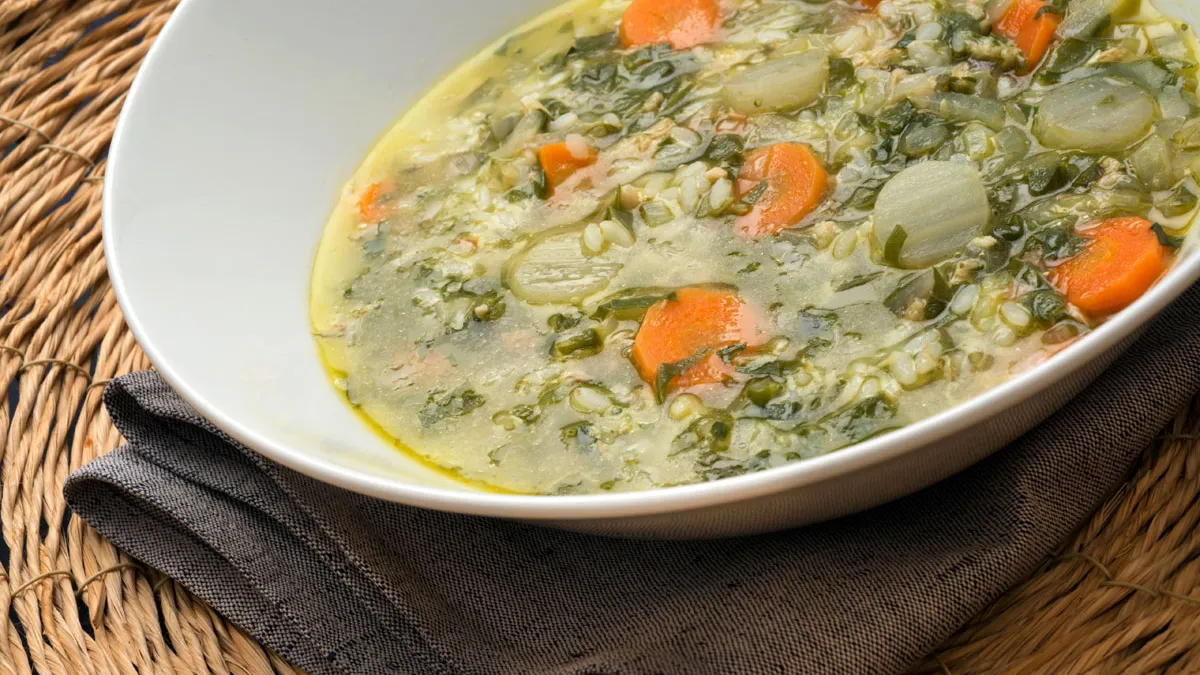 Receta de Karlos Arguiñano de sopa de arroz con verduras y pollo, un plato muy completo y nutritivo.