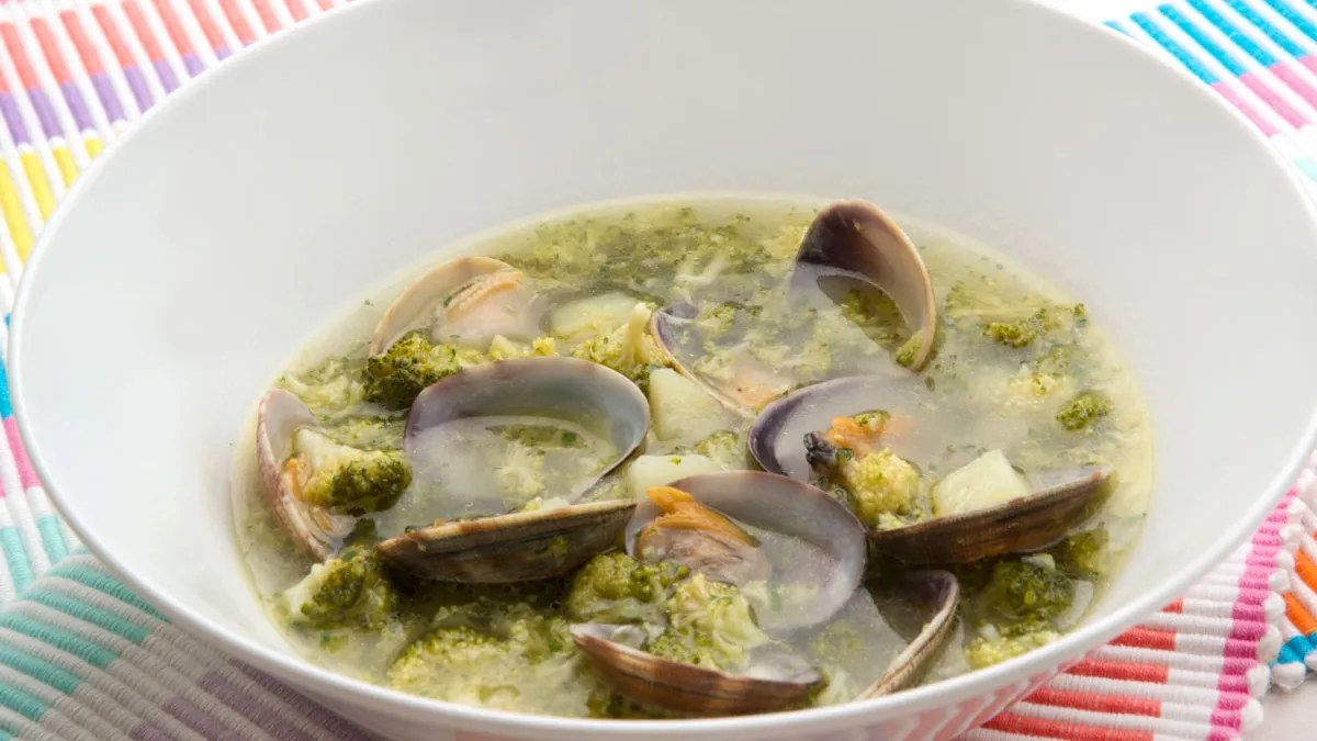 Sopa de brócoli con almejas