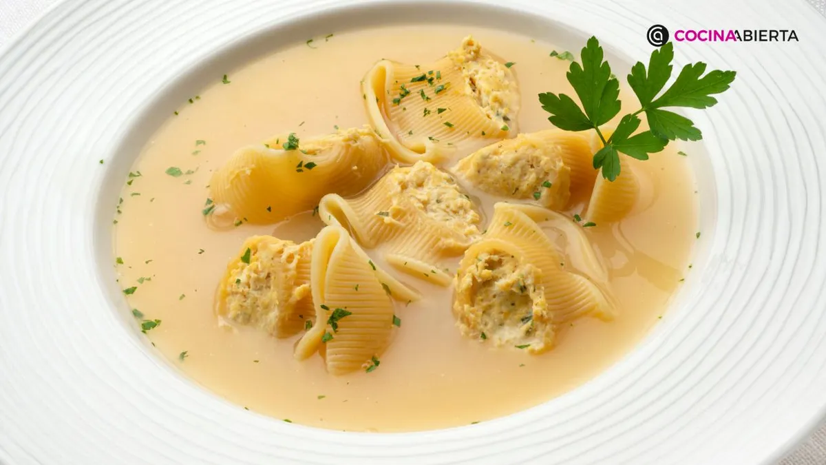 Sopa de galets rellenos de pollo, receta de Karlos Arguiñano