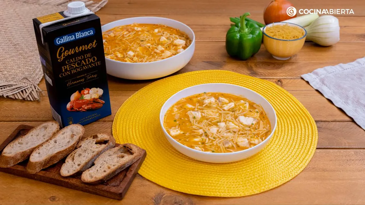 El secreto para potenciar el sabor de esta sopa es cocinarla con un caldo muy especial, el Caldo Gourmet Gallina Blanca de Pescado con bogavante. Le darás un toque único con notas de marisco, sin necesidad de añadir más ingredientes ni condimentos.